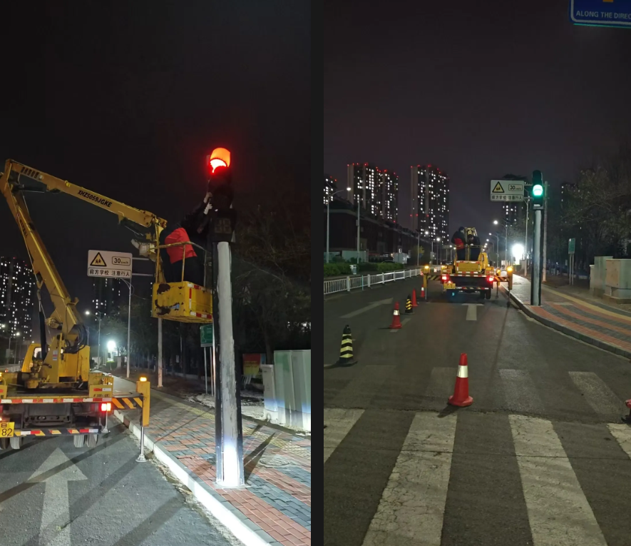 在交通领域,津易公司通过遍布城市道路的智能摄像头和传感器,实时收集路况信息。精准识别受影响路段,并及时将相关信息传输至交通管理部门。同时外场维护人员场外巡检,对交通信号灯、诱导屏、指示牌及施工围挡进行巡检,并做好加固工作。4 月 12 日下午六时许,接到交通支队及运维中心通知,北闸口镇一处道路交口的信号灯存在安全隐患。接到通知后,公司立即响应,第一时间将安全保障工作放在首位。外场运维人员及时赶赴现场,在施工周边设置围挡,有效隔离施工区域与过往车流,避免意外发生。确保员工施工环境安全的情况下进行抢修,最终及时排除了潜在隐患。